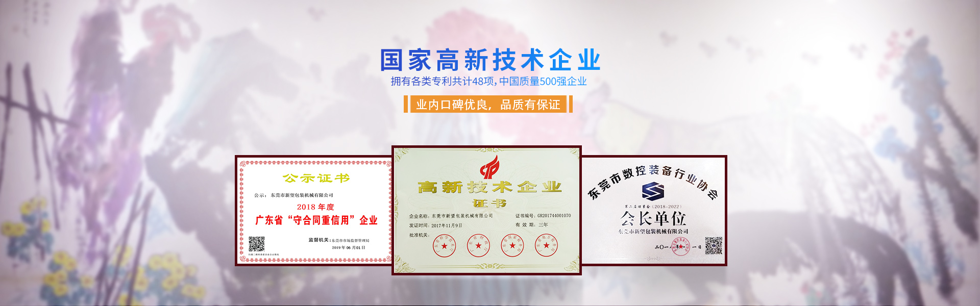 新望機(jī)械成立于1998年,位于東莞市東部工業(yè)園區(qū)的中心地帶——企石鎮(zhèn)東平村,交通方便、環(huán)境優(yōu)美舒適、視野開闊。公司注冊資本2000萬元,擁有辦公室、廠房等18,000多平方米。已通過ISO9001:2015國際質(zhì)量管理體系認(rèn)證,擁有國家各類專利共計58項(xiàng)。是東莞市企石鎮(zhèn)工商聯(lián)副會長單位、東莞市企石鎮(zhèn)文學(xué)藝術(shù)界聯(lián)合會副主席單位、東莞市環(huán)保包裝行業(yè)協(xié)會副會長單位、東莞市數(shù)控裝備行業(yè)協(xié)會第二屆會長單位、廣東省包裝技術(shù)協(xié)會常務(wù)理事單位、廣東省膠粘劑行業(yè)協(xié)會理事單位、廣東省著名商標(biāo)企業(yè)、國家高新技術(shù)企業(yè)。